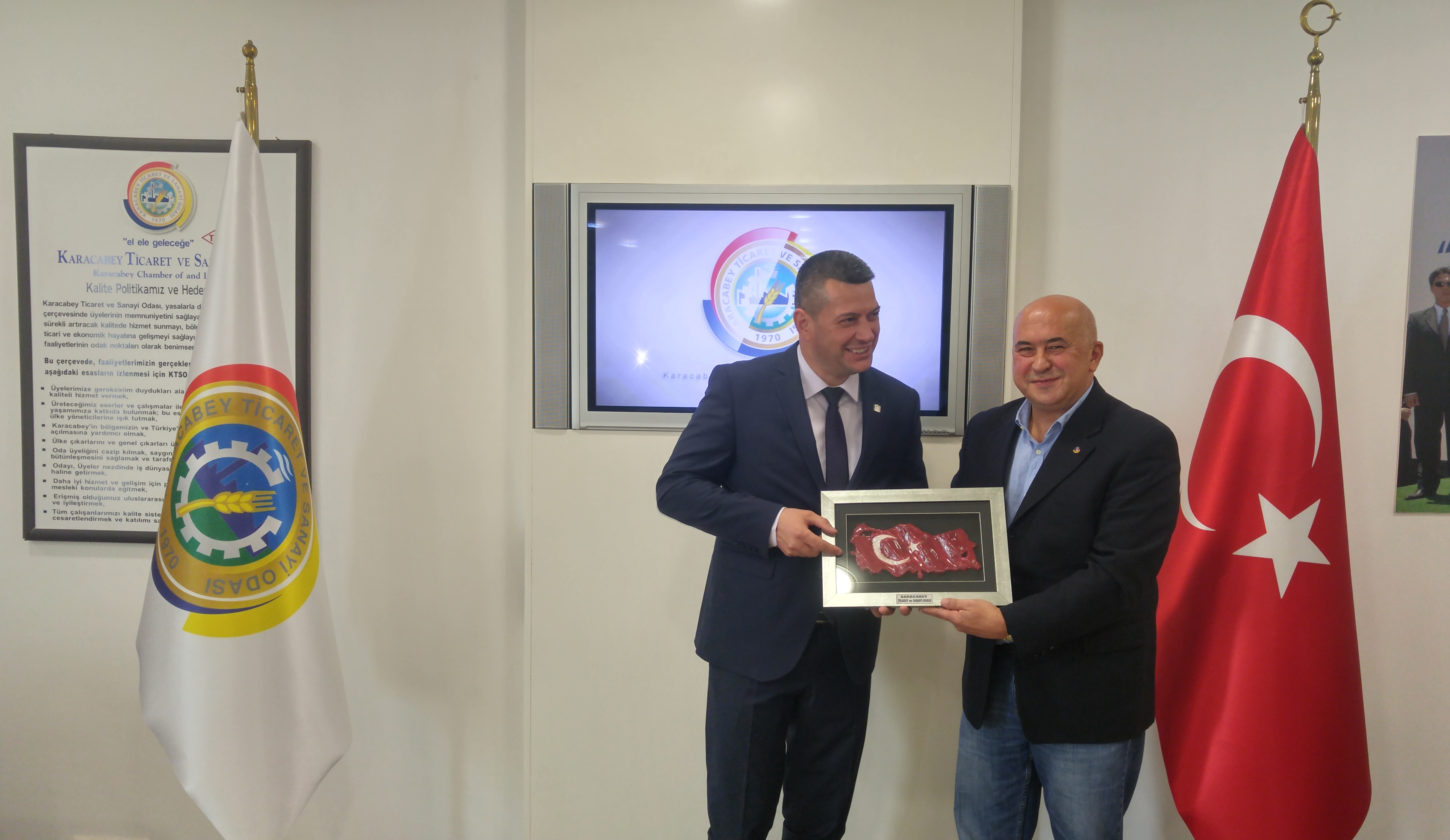 Karacabey Ticaret ve Sanayi Odası Yönetimi, bir dizi temaslarda bulunmak üzere ilçemize gelen Bulgaristan Nedelino Belediye Başkanı Boyan Kehayov ve beraberindeki heyeti odamızda ağırladı.