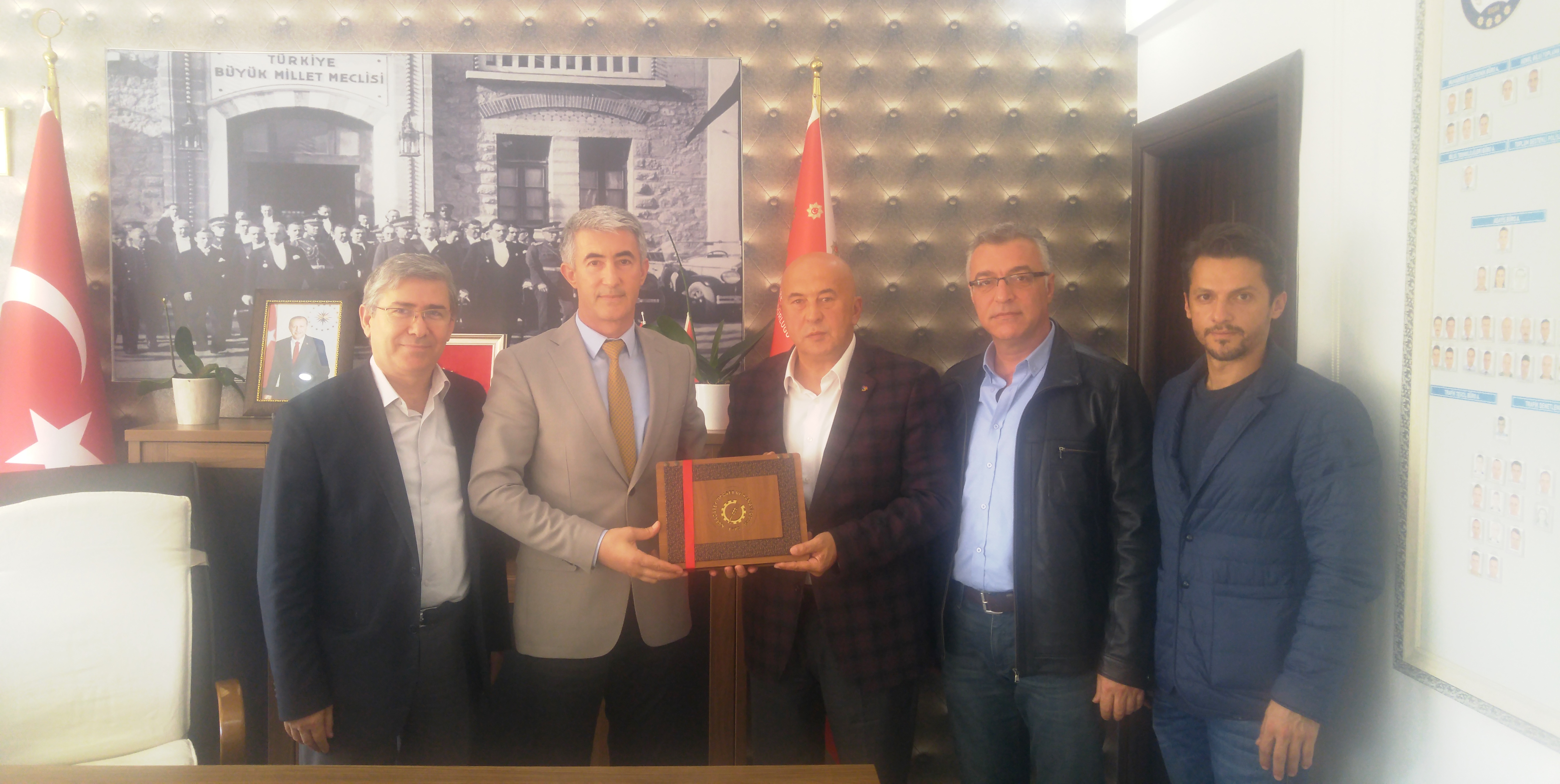 Karacabey TSO Yönetim Kurulu Başkanı Naci Güncü, Meclis Başkanı Hüseyin Fikri Sezer, Yönetim Kurulu Başkan Yardımcısı Sezgin Parlaklar ve Yönetim Kurulu Sayman Üyesi Gökhan Tüydeş'ten oluşan heyet Karacabey İlçe Emniyet Müdürü olarak atanan Sakıp Yalta'ya "Hoşgeldiniz" ziyaretinde bulundu.