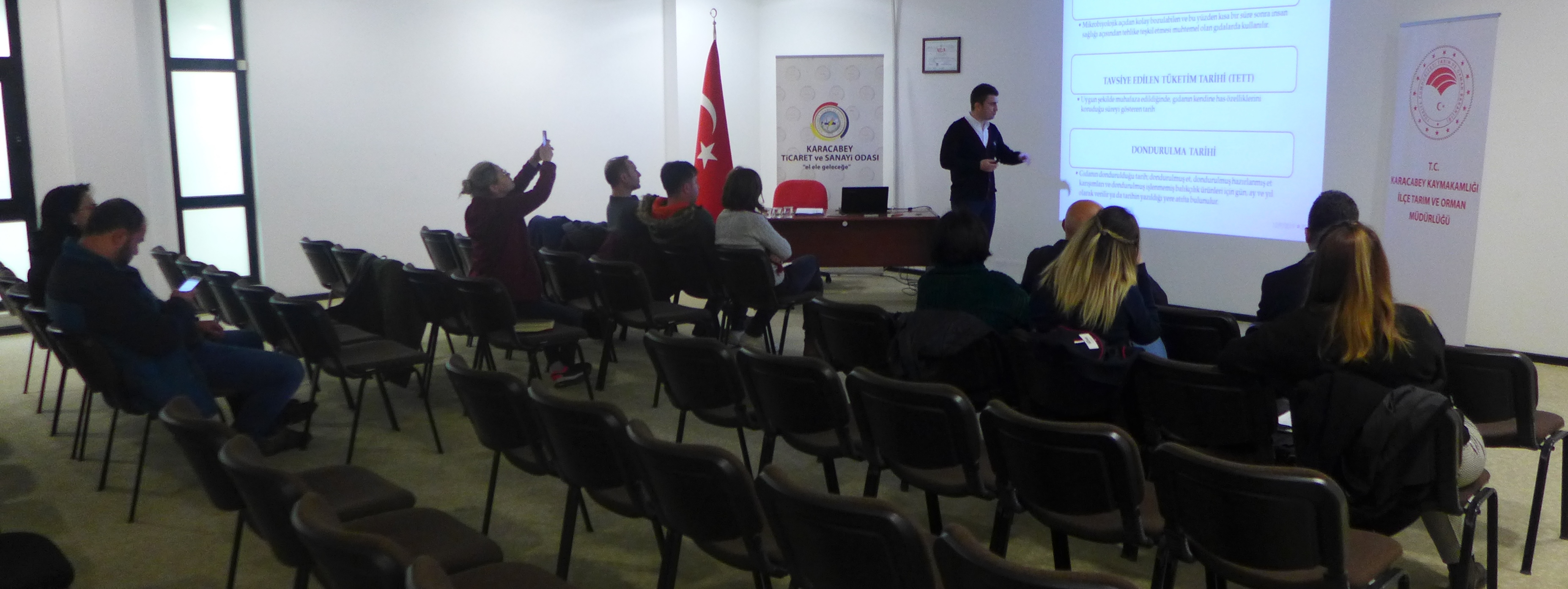 Karacabey İlçe Tarım ve Orman Müdürlüğü yetkililerinin sunumuyla gerçekleştirilen seminerde katılımcılara Türk Gıda Kodeksi Gıda Etiketleme ve Tüketicileri Bilgilendirme Yönetmeliği konusunda detaylı bilgiler aktarıldı.