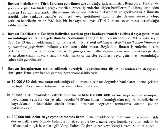 Türkiye Odalar ve Borsalar Birliği'nden alınan yazıda; 31 Aralık 2019 tarihli ve 30995 sayılı (5.Mükerrer) Resmi Gazete'de "Türk Parası Kıymetini Koruma Hakkında 32 Sayılı Karara İlişkin Tebliğ(İhracat Bedelleri Hakkında)(Tebliğ No: 2018-32/48)'de Değişiklik Yapılmasına Dair Tebliğ(Tebliğ No: 2019-32/56) yayımlandığı bildirilmiştir.