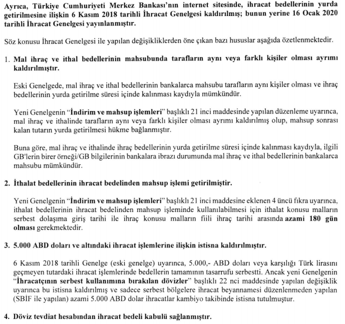 16 Ocak 2020 Tarihli İhracat Genelgesi Hk.